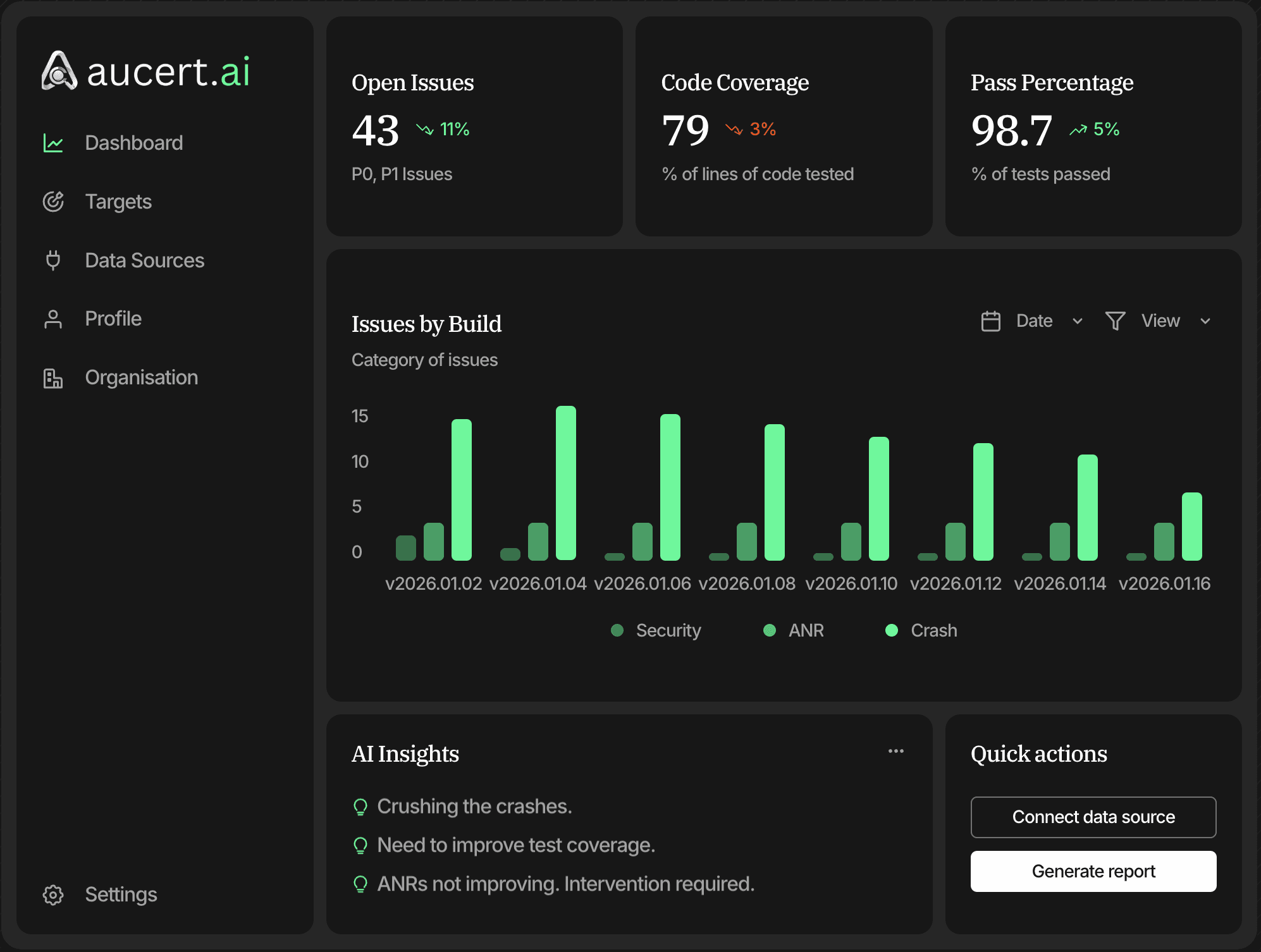 Generate fast. Release fearlessly. Ultimate safety net between your code and your customers.